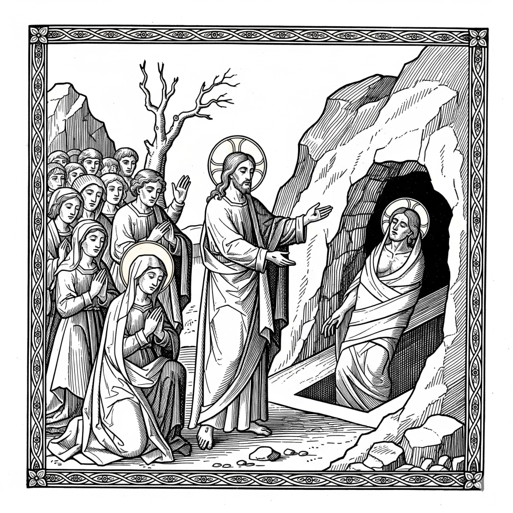 Ewangelia (Jn 11, 1-45): Wskrzeszenie Łazarza. Jezus objawia się jako „Zmartwychwstanie i Życie”, zapowiadając swoje własne zwycięstwo nad śmiercią.