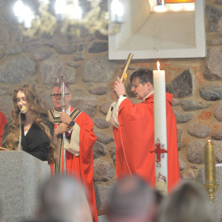Sakrament Bierzmowania: Po homilii i odnowieniu przyrzeczeń chrzcielnych, arcybiskup udzielił sakramentu dojrzałości chrześcijańskiej zgromadzonej młodzieży, namaszczając każdego indywidualnie świętym krzyżmem.
