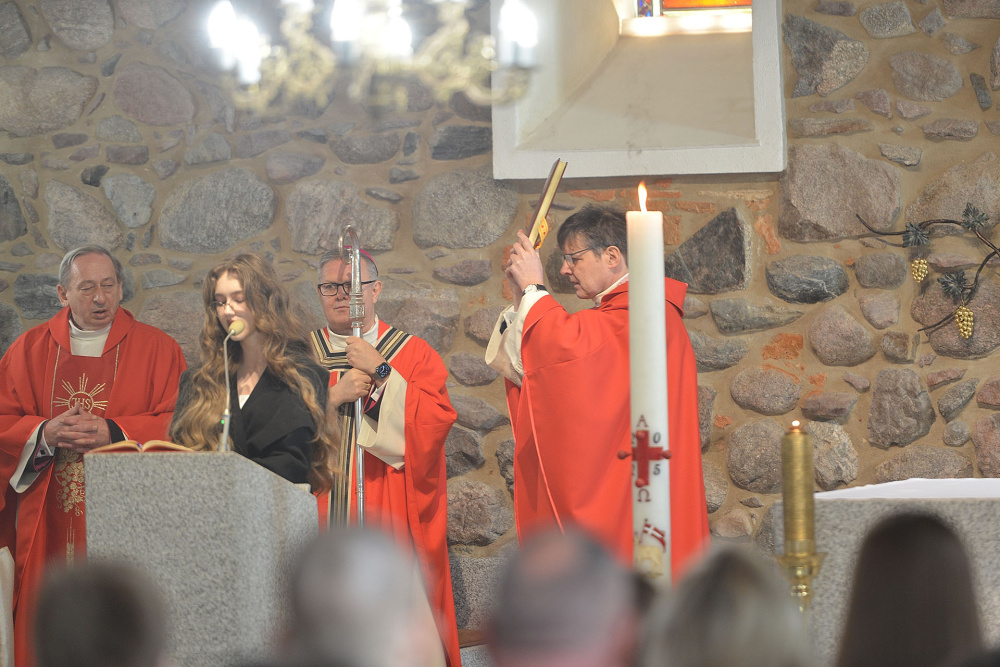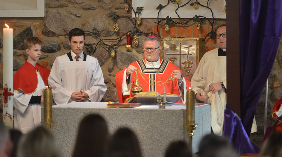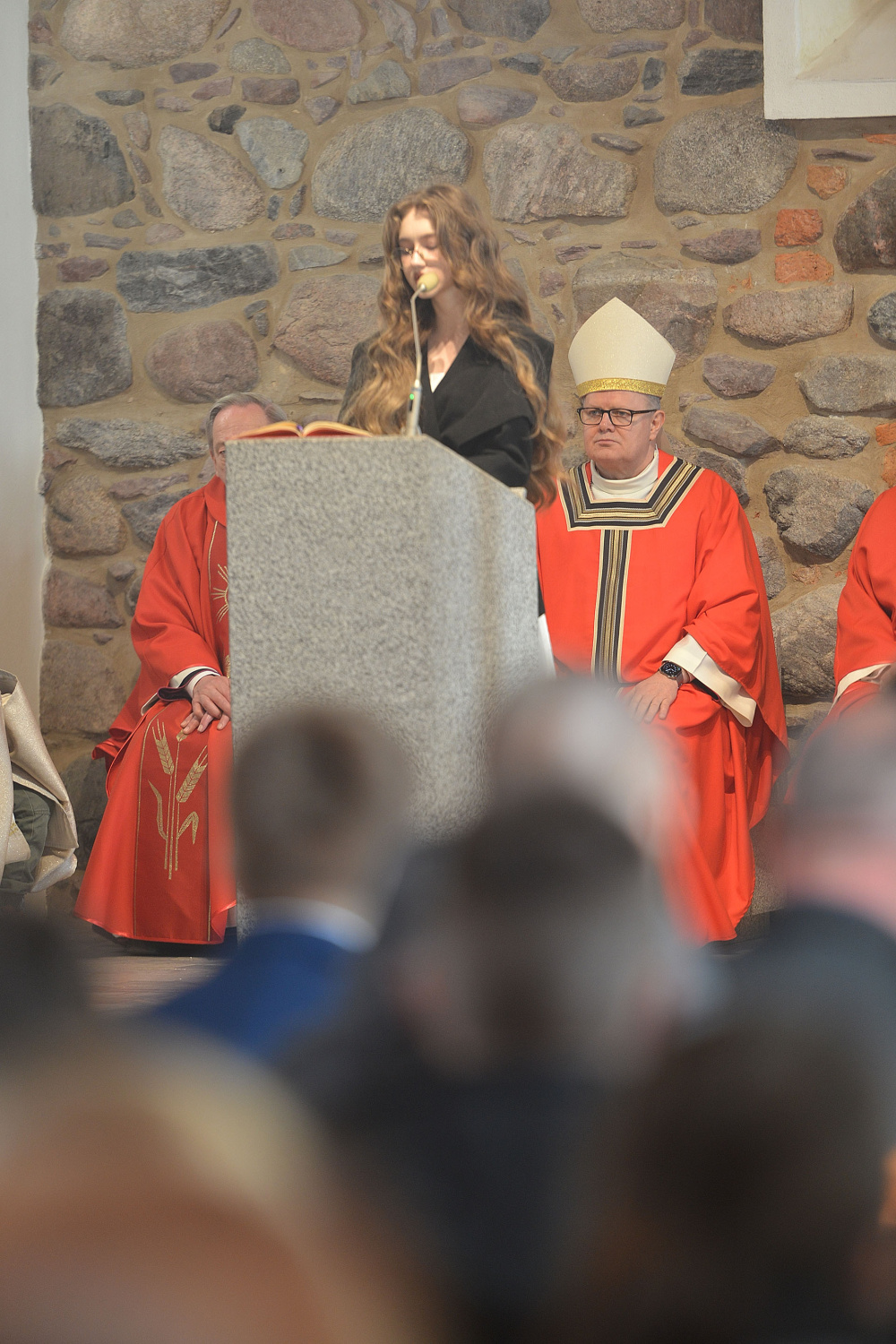 "Przewielebni bracia kapłani, umiłowani w Chrystusie siostry i bracia, a szczególnie gorąco pozdrawiam kandydatów do sakramentu bierzmowania – już za chwilę bierzmowanych. Zawsze w czasie takich ważnych spotkań i w czasie modlitwy, a szczególnie w czasie Mszy Świętej, towarzyszy nam Słowo Boga. Nazywamy to Liturgią Słowa. Przychodzimy na Mszę Świętą, ale najpierw zostajemy wprowadzeni w modlitwę przez słowo Pana.